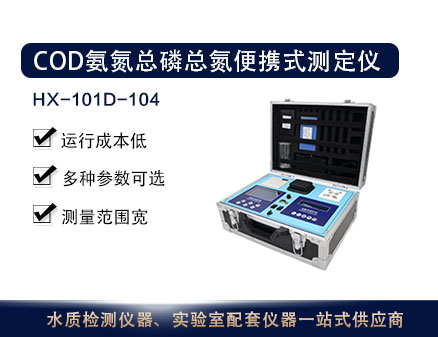 HX-101D-104型便攜式水質測定儀是我公司專為監測、監理人員用于現場測定各種水樣化學指標的一體化智能儀器。本儀器具有自動PID控溫、雙液晶顯示、交直流兩用、自動調零、濃度直讀、曲線存儲、自動打印等特點,儀器操作簡便,人機交互式操作,使用者無需復雜的專業知識即可應用本產品。
