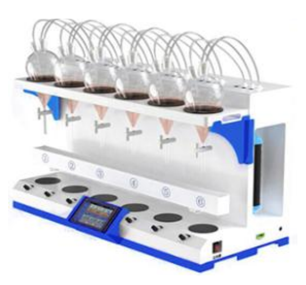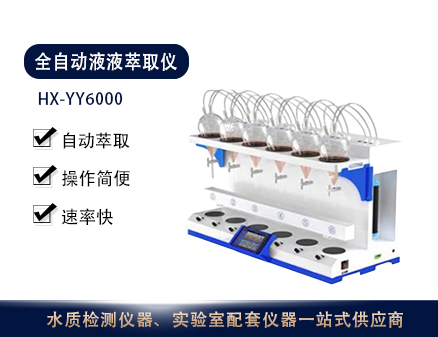 HX-YY6000全自動(dòng)液液萃取儀采用新封閉式靜音潔凈空氣內(nèi)循環(huán)震蕩原理,雙向氣液混合技術(shù),用于實(shí)驗(yàn)室水質(zhì)檢測(cè)水中油、揮發(fā)酚、陰離子等項(xiàng)目的液液萃取前處理