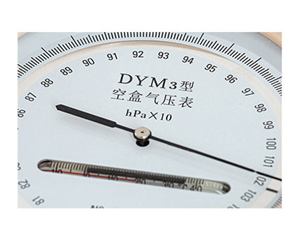 DYM3型空盒氣壓表是以變形元件作感應的一種大氣壓測量儀器。它以攜帶方便、測量準確,測壓范圍廣、使用維護簡便、無汞污染等優點